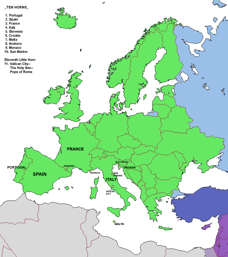 The ten nations will be ten catholic nations as labeled below with Vatican City/the