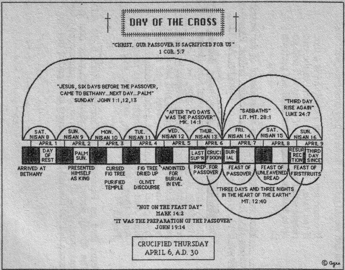 Opposed to popular belief, the crucifixion of Jesus Christ most apparently took place on Thursday April 6, 30 A.D. In that time, the night came before day as counting one day--the evening before morning. (Jesus being born in early Fall 5 B.C. would make him thirty-three and half years old on the crucifixion).