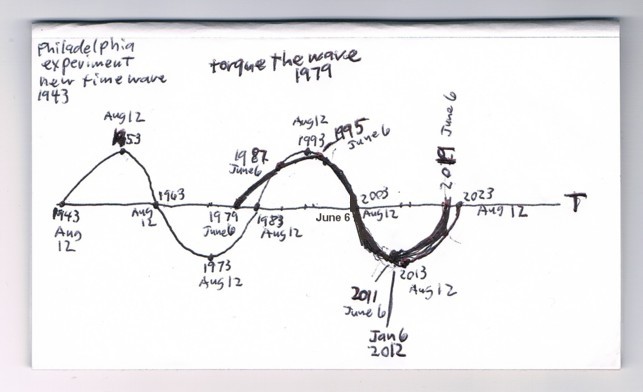 Philadelphia Experiment waveform-- sinewave period 40 years; node points 10 years.
