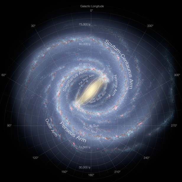 -- 1. Earth 2. Milky Way graphic 3. Milky Way photo 4. Time-movement graph 5. Galaxy movement graph